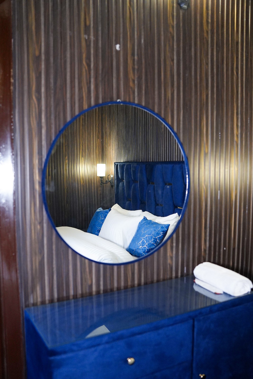 Step into refined comfort. Our Boutique Luxe Suite blends soft aesthetics, warm lighting, and timeless design — all at Kashmir Point, right on Main Bank Road. Enjoy 24/7 housekeeping, secure parking, a rooftop live BBQ, and an intimate private cinema under the stars. With a restaurant on the top floor, every moment feels curated, cozy, and beautifully luxurious.