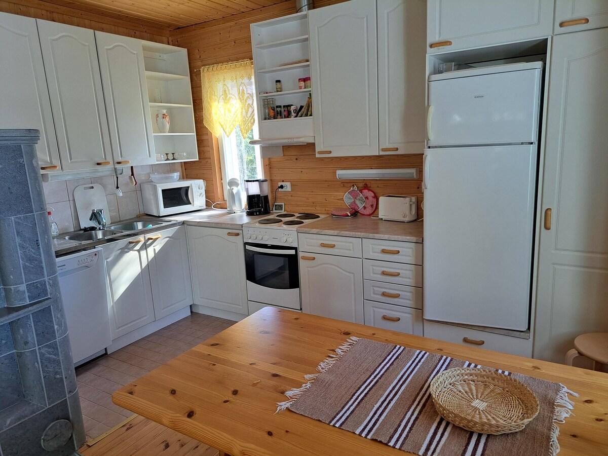 Nice rebuilt log cottage by lake Siikanen. Cottage is electrified and equiped with cold drinking water and warm shower water system. Peaceful beach opening to direction south. Available a small boat and two SUP-boards. At the yard there is a gas grill and an equipment cottage for firewood and eco wc. Our own summer house is near by (at 150 meter distance) thus help and additional services are often easily found. English and German are spoken by the hosts Timo and Tuula.