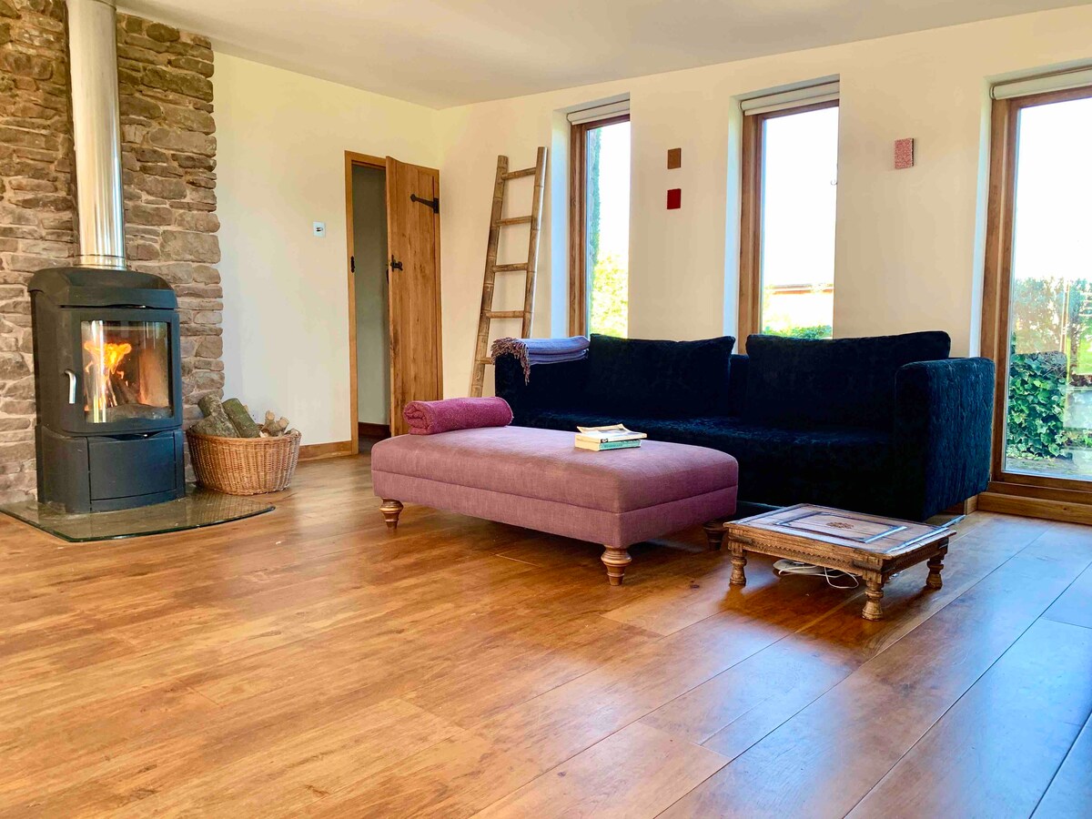 Loft de lujo romántico para dos en una finca privada de 40 acres en el paisaje nacional del valle de Wye. Perfecto para lunas de miel, observadores de estrellas, propuestas, aniversarios o momentos importantes. Disfruta de las vistas panorámicas de Mork Valley a través de la ventana arqueada, las vigas de roble abovedadas y un acogedor fogón (incluye leña y malvaviscos). Incluye una generosa cesta de bienvenida y acceso exclusivo a nuestros cielos oscuros, prados, arroyos y bosques. Un retiro tranquilo y mágico con experiencias de alta gama y curadas disponibles.