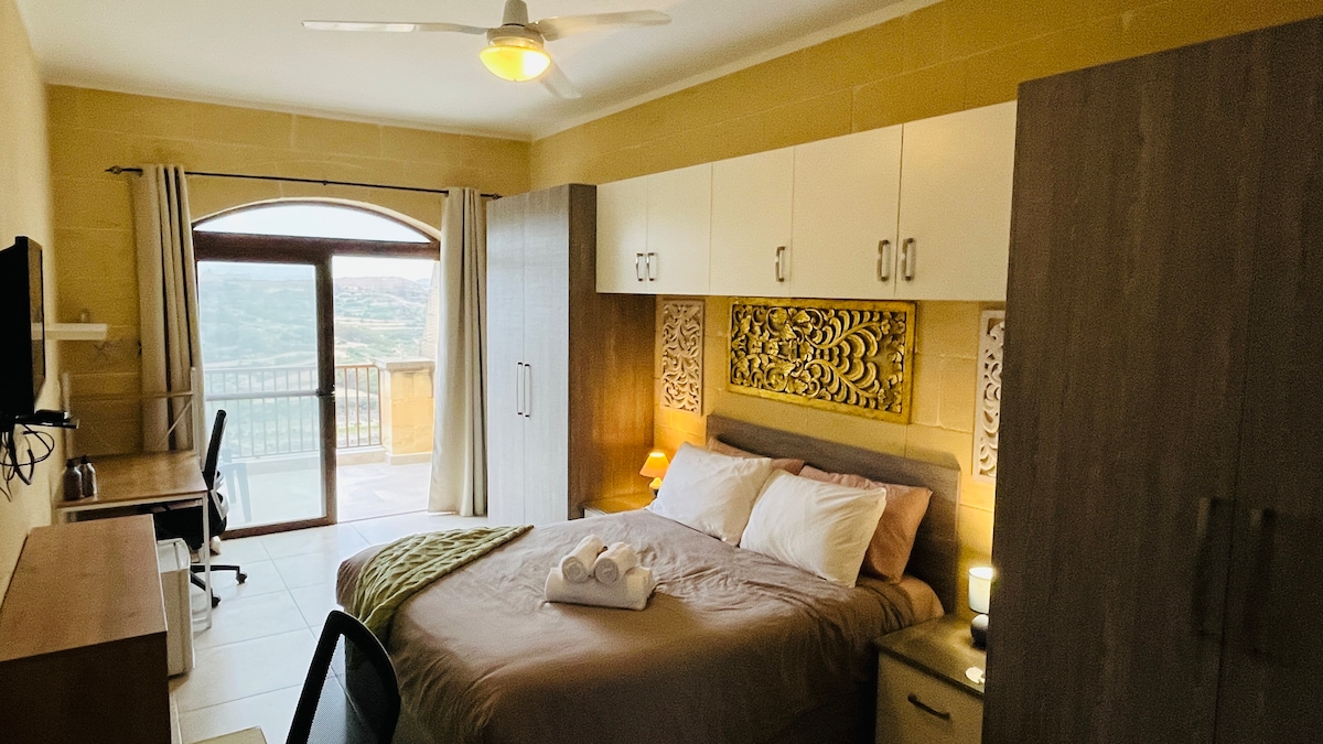 Escápate al tranquilo entorno de Gozo en nuestra casa de vacaciones premium de 3 plantas con inmejorables vistas al mar Mediterráneo y puestas de sol sobre un auténtico pueblo gozitano. Los huéspedes disfrutan del uso privado de la increíble terraza en la azotea con una piscina de borde de vidrio y barbacoa/comedor al aire libre. El interior de diseño está equipado con cocina completa, TV inteligente 4K, aire acondicionado en todas las habitaciones y wifi. La tranquila ubicación está a solo 5 minutos a pie de la bahía de San Blas y a 7 minutos en coche de la arena de la bahía Ramla.