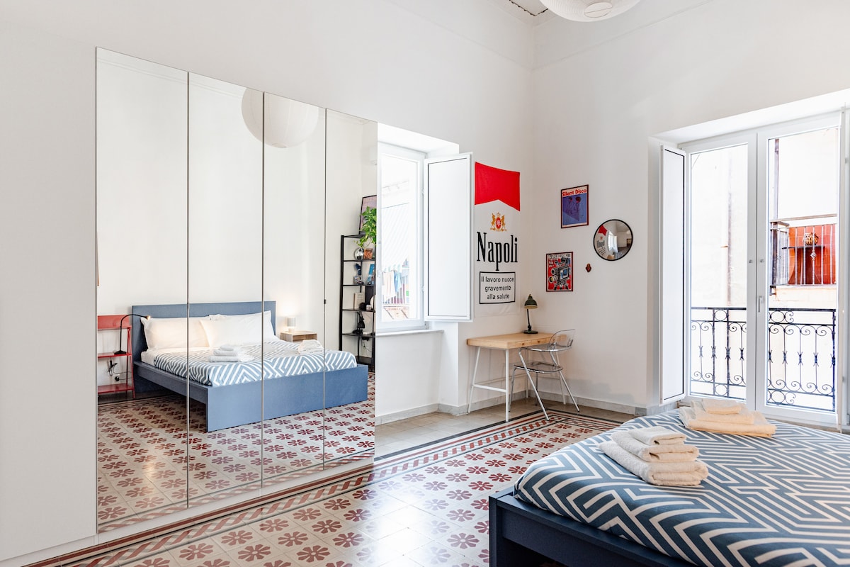 Es un apartamento de 60 metros cuadrados, reformado y amueblado para permitirte tener la máxima comodidad y placer en la estancia. Está equipado con productos de primera necesidad y mucho más. También hay todas las comodidades como aire acondicionado, lavadora y TV. El apartamento es muy luminoso (¡tiene tres balcones!) y se encuentra en el primer piso de un edificio de época bien cuidado a 20 metros de la céntrica Via Toledo.