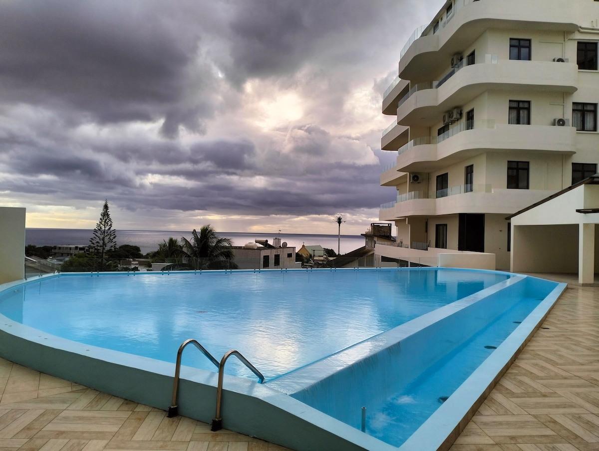 Relájate en nuestro acogedor apartamento de 1 dormitorio a solo 3 minutos de la playa de Flic en Flac. Disfruta de las vistas al mar y a la montaña desde tu terraza privada, relájate en la piscina en la azotea, el sauna y el hammam, o mantente activo en el gimnasio. El apartamento incluye una cocina totalmente equipada, WiFi, TV vía satélite, ascensor y estacionamiento. Los restaurantes, tiendas y supermercados están a pocos pasos, por lo que es el refugio tropical perfecto para la comodidad, la conveniencia y la relajación.