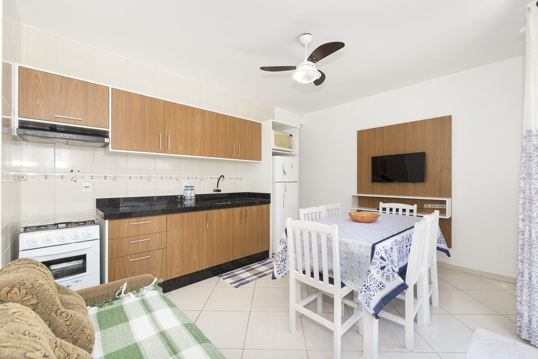 Gran apartamento ubicado a 50 metros de Praia da Lagoinha, a 100 metros de Praia de Bombinhas, 600 m da Praia da Sepultura y 800 m de las islas Quatro. Está totalmente amueblado. Tiene 2 dormitorios (ambos con aire acondicionado), 2 baños, un gran balcón con parrilla, una sala de estar con ventilador, una lavandería con lavadora y una cocina completa con estufa, nevera, microondas, cafetera, tostadora, licuadora y otros utensilios. Ofrecemos sillas de playa, sombrillas y almohadas para los huéspedes.
