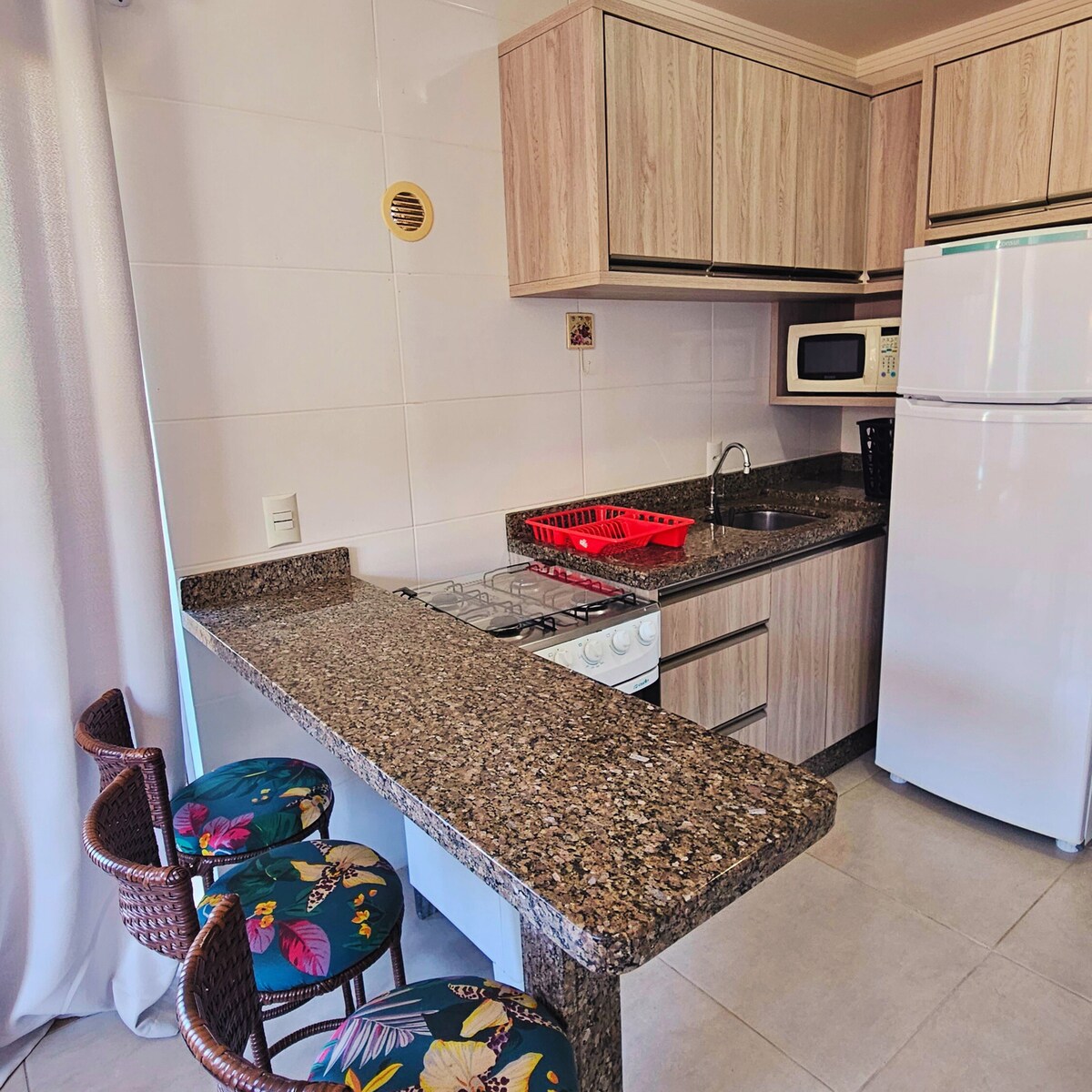 Espaço inteiro. Possui Ar condicionado, Com cozinha e banheiro individual. Quitinete pra você que vem de carro e quer aproveitar a praia podendo atender até 4 pessoas! Não tem churrasqueira e não tem máquina de lavar roupas. Proibido fazer qualquer tipo fogo ou fogueira na propriedade. Praia de Morrinhos 1km; Praia de Mariscal 2,5km; Praia de Canto Grande mar de fora 3km; Bombinhas tem 39 praias todas próximas uma das outras. Além das praias há muitos outros pontos turísticos