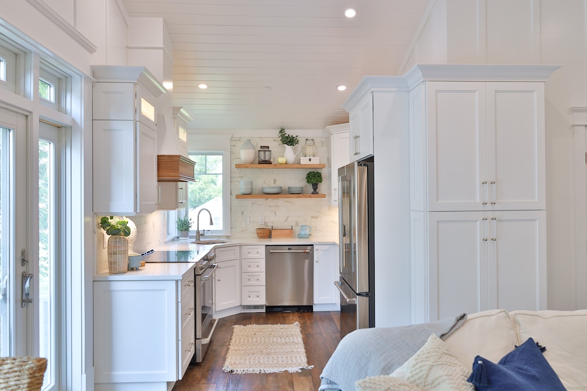 Espacio sereno enclavado en el bosque, con vistas al agua. Tienes tu propia casa de campo privada en nuestra propiedad de 10 acres para ver las puestas de sol y disfrutar de la naturaleza que te rodea. ¡Verás ciervos, conejitos, ranas, tortugas, pájaros y mucho más desde el precioso porche delantero! Como enfermera, puedo garantizar que nuestro espacio siempre se ha limpiado y desinfectado con los más altos estándares, con el uso regular de una luz de ozono. Échale un vistazo en Instagram para más felicidad: theblissfulretreat y FB: theblissfulretreatrockhall