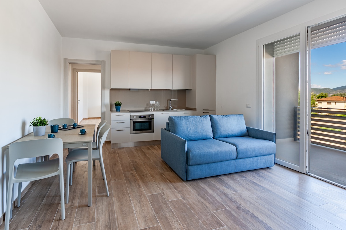 Precioso apartamento en la planta baja con jardín independiente. Con este alojamiento, tu familia estará cerca de todo, a dos pasos del centro histórico de Pietrasanta, a 5 minutos a pie de los servicios y a 15 minutos de las playas de la Versilia. El apartamento consta de una pequeña cocina con península, sala de estar con 2 sofás, baño con ducha, dormitorio de matrimonio y dormitorio con cama alta de una plaza y media, además de un pequeño jardín en 2 lados con muebles para comer al aire libre.