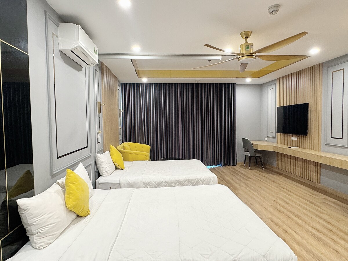 Located in a 4-star building, just 1 minute from the beach in front. 76 Tran Hung Dao Quy Nhon 💧💧💧Luxury APARTMENT INTERIOR with full modern equipment: 🎬 Smart TV with Netflix pre-installed Washing machine for comfortable use without charge 💧Super large refrigerator with 2 freezer and cool compartments 👩🍳 Smart induction cooker system with full kitchen utensils, and genuine hood. Feel free to cook for your family if you don't want to go to a restaurant!