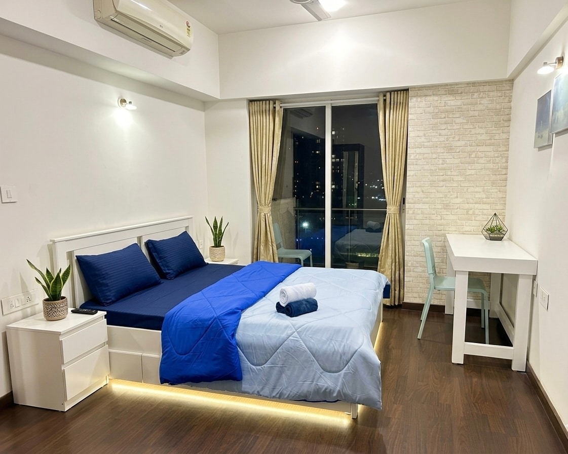 Lujoso apartamento de 2BHK de gran altura junto a Reliance Jio y cerca de la estación de Ghansoli. Ideal para estancias de negocios o de placer con vistas a la ciudad y comodidades modernas. Lo más destacado del🏡 apartamento: • 2 dormitorios, 2 baños. • Balcón con vistas a la ciudad. • Sofá-cama • Aire acondicionado. • Wifi rápido • Lavadora • Refrigerador - Cocina bien equipada • Purificador DE agua Este elegante apartamento en Navi Mumbai ofrece comodidad, conveniencia y todas las comodidades que necesitas para disfrutar de una estancia excelente.