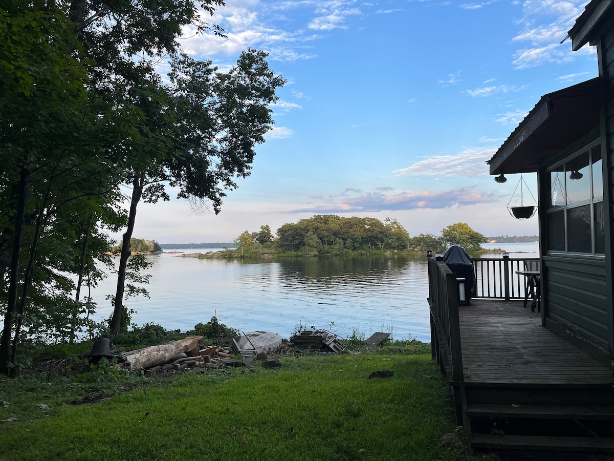 Disfruta de tu privacidad en esta cabaña frente al mar en la histórica Smugglers Cove en el St. Lawrence en el corazón de las 1000 Islas. Tendrás uso de toda la cabaña con fantásticas vistas al río desde tu propio patio. Convenientemente ubicado junto a la carretera 1000 Islands Parkway, una de las rutas panorámicas más bellas de Norteamérica, los huéspedes pueden disfrutar de paseos, caminatas y ciclismo por el paseo marítimo pavimentado y pintoresco de 37 km. Puedes llegar en barco o en coche; entrada privada a tu cabaña.