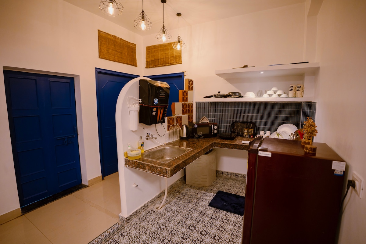 ¡Namasté! ¡Bienvenido a tu hogar lejos de casa en Varanasi! Espacio privado de lujo con jardín en la azotea. Perfectamente ubicado a menos de 20 minutos de los sitios emblemáticos de Varanasi (templo Shri Kashi Vishwanath y Ghats), este espacio ofrece una cama tamaño king, una cocina totalmente equipada, wifi, un gran televisor Android y una amplia terraza para relajarse o practicar yoga. Ya sea que estés aquí para explorar, meditar o simplemente relajarte, esperamos que te sientas como en casa y te vayas con una sensación de rejuvenecimiento.