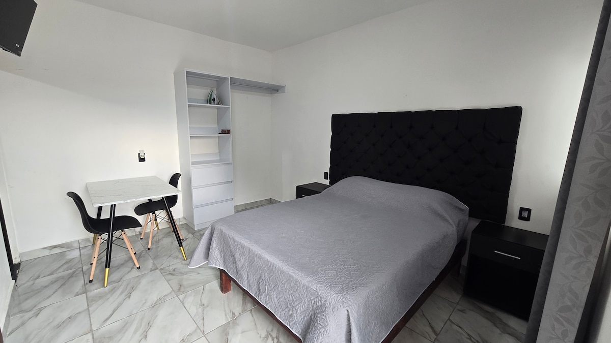 *YA FACTURAMOS* Mini Departamento al norte de la ciudad, en fraccionamiento muy seguro. Cerca de Galerias, Hospital Muguerza, UANE, TEC DE MONTERREY, AVEMED, MEDICA BOSCO, cines, centros comerciales, restaurantes y bares. Disfruta de un espacio equipado con barra comedor, horno de microondas, frigobar. TV de 50 pulgadas con todos los servicios de streaming Netflix, HBO, Star+, Disney+, Paramount+, WiFi de alta velocidad.