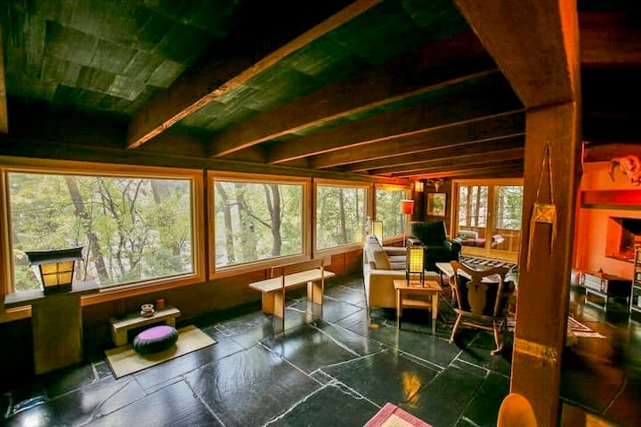 Urban Zen retreat; unique mid-century modern meets Japan in a great neighborhood full of architectural gems. Updated 1950's architect-built passive-solar artist retreat home, surrounded by trees and Japanese Gardens. Casual comfort far from sterile, filled with art. Complete tranquility 10 min from downtown Mpls and very close to both U of MN campus. Lively, friendly neighborhood in walking distance to grocery store, gift shops, wine shop, yoga studio, coffee shops and great restaurants.