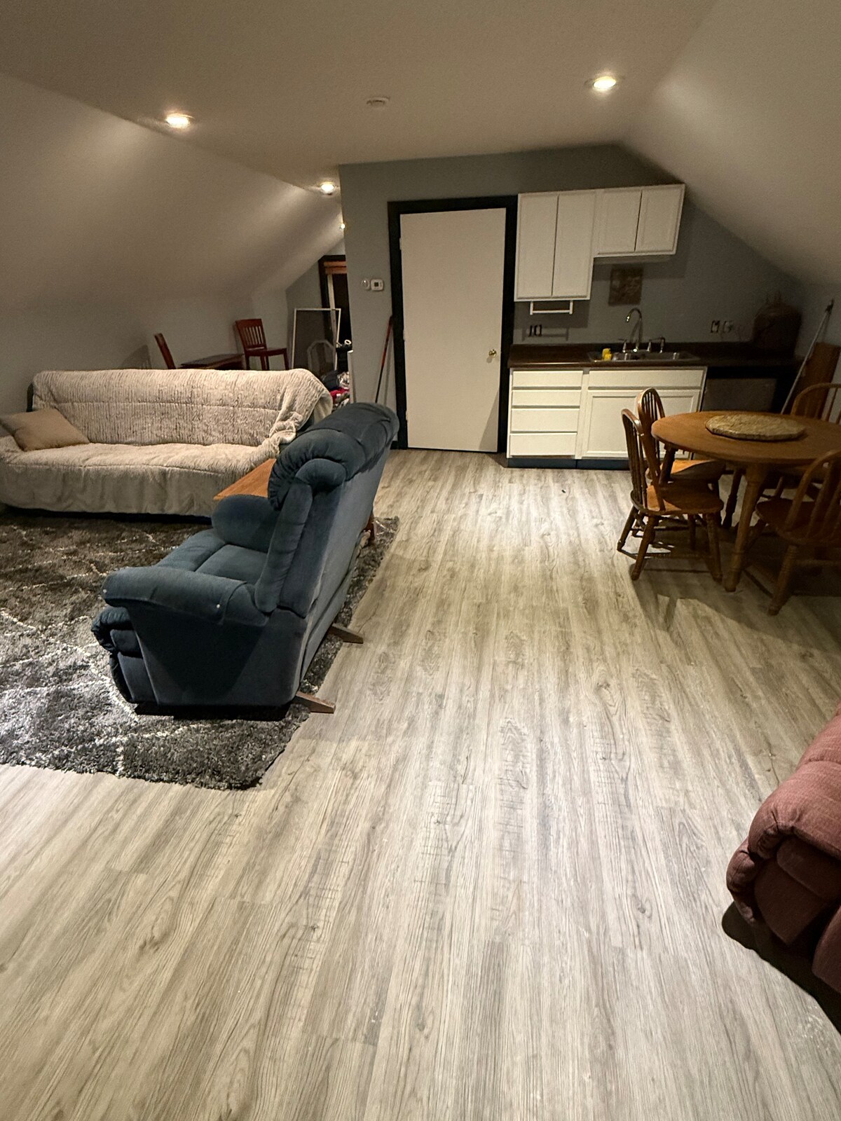 Apartamento totalmente amueblado con entrada privada y estacionamiento fuera de la calle en el centro de Devils Lake. A poca distancia a pie de tiendas de comestibles, restaurantes, vida nocturna y tiendas. Equipado con wifi gratuito, internet gratuito y televisor inteligente. Dos dormitorios separados, uno con una cama queen y el otro con una cama de matrimonio. Es un departamento de arriba que requiere subir una escalera, por lo que NO es accesible para personas con discapacidad. Absolutamente no se permite la limpieza de peces ni juegos en las instalaciones.