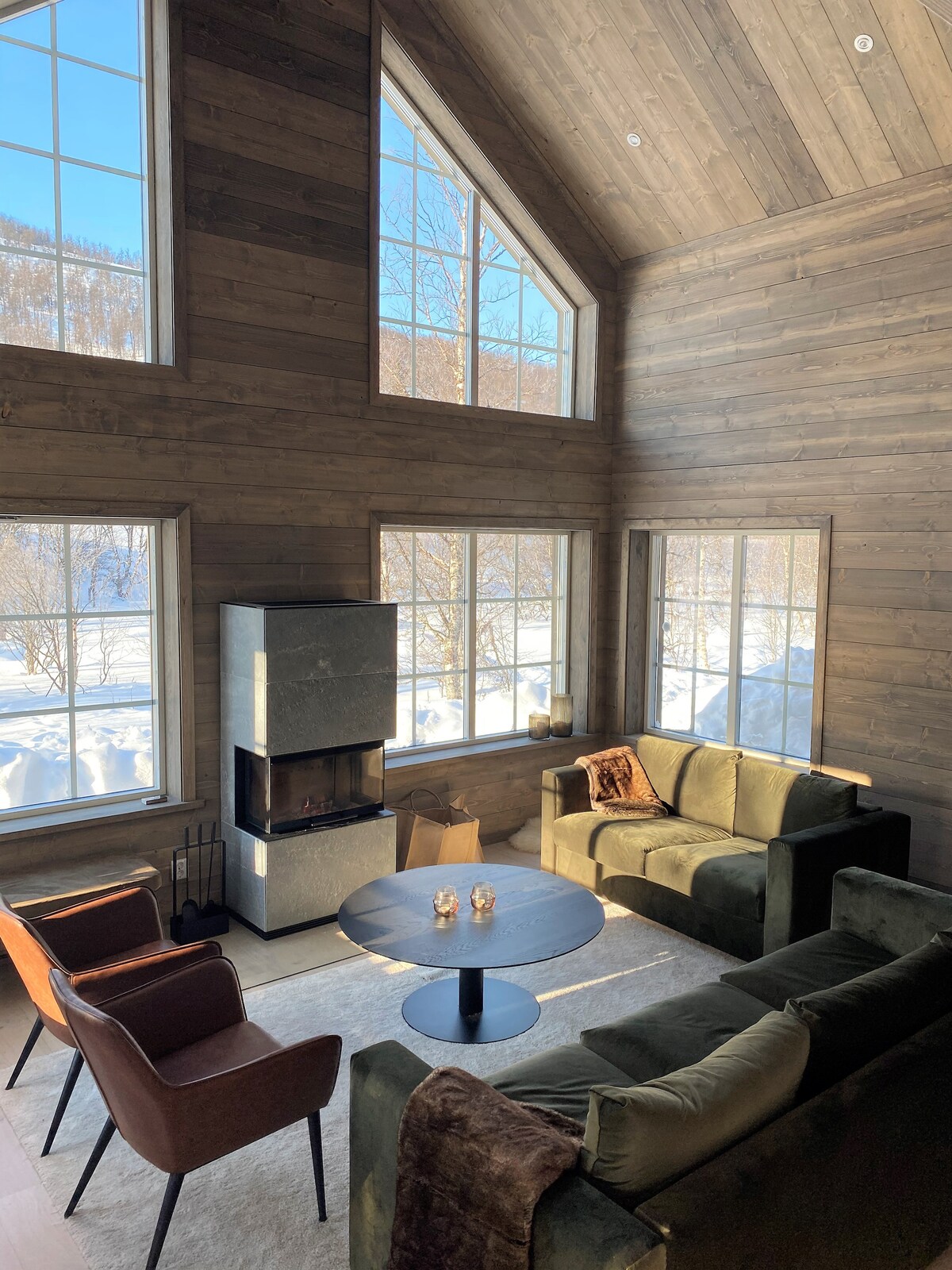 Casa de montaña de diseño arquitectónico de nueva construcción (2023) con acceso directo a las pistas de esquí en Hamra, Tänndalen - Funäsfjällen. ¡Perfecta para dos familias/grupos! Planta superior: dormitorio principal con cama de 180 cm (Hästens), ducha privada y lugar de trabajo. Gran salón con 4,5 m de altura de techo, mesa de comedor y sofás. Gran chimenea. Cocina y plano abierto. Planta baja: habitación de invitados con cama doble, habitación con cinco literas. Minispa con sauna y ducha, y un gran aseo con ducha. Ático: dos camas individuales, sofá y TV.