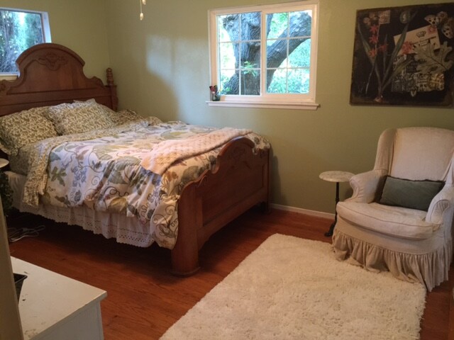 Guest suite attached to the main house with separate entrance. French doors opening up to large patio. Well lit entrance and living space. Kitchenette includes fridge, electric portable induction cooktop, microwave, pans, cutlery, and tableware. Whole house water filtration system. Large bathroom with walk-in shower. Air mattress if needed for extra guests. Large contained back yard good for dogs. Ten min. to State Capital, CSUS, and five min. to UC Davis Medical Center.