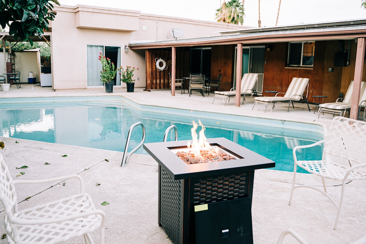 Enjoy a stylish experience at our centrally located Retro Casita (pool house) with its own private entrance, direct access to pool and massaging spa. Close to all necessities: Albertsons, Sprouts, Trager Joe’s, gas station, dry cleaners, hair & nail salons, restaurants, shops. Minutes away from upscale shopping, art galleries, restaurants & nightlife on El Paseo, McCallum Theater, Tennis Gardens, Acrisure Arena, Golf Resorts, Casinos, The Living Desert Zoo, *Coachella & Stagecoach Shuttle*!!!