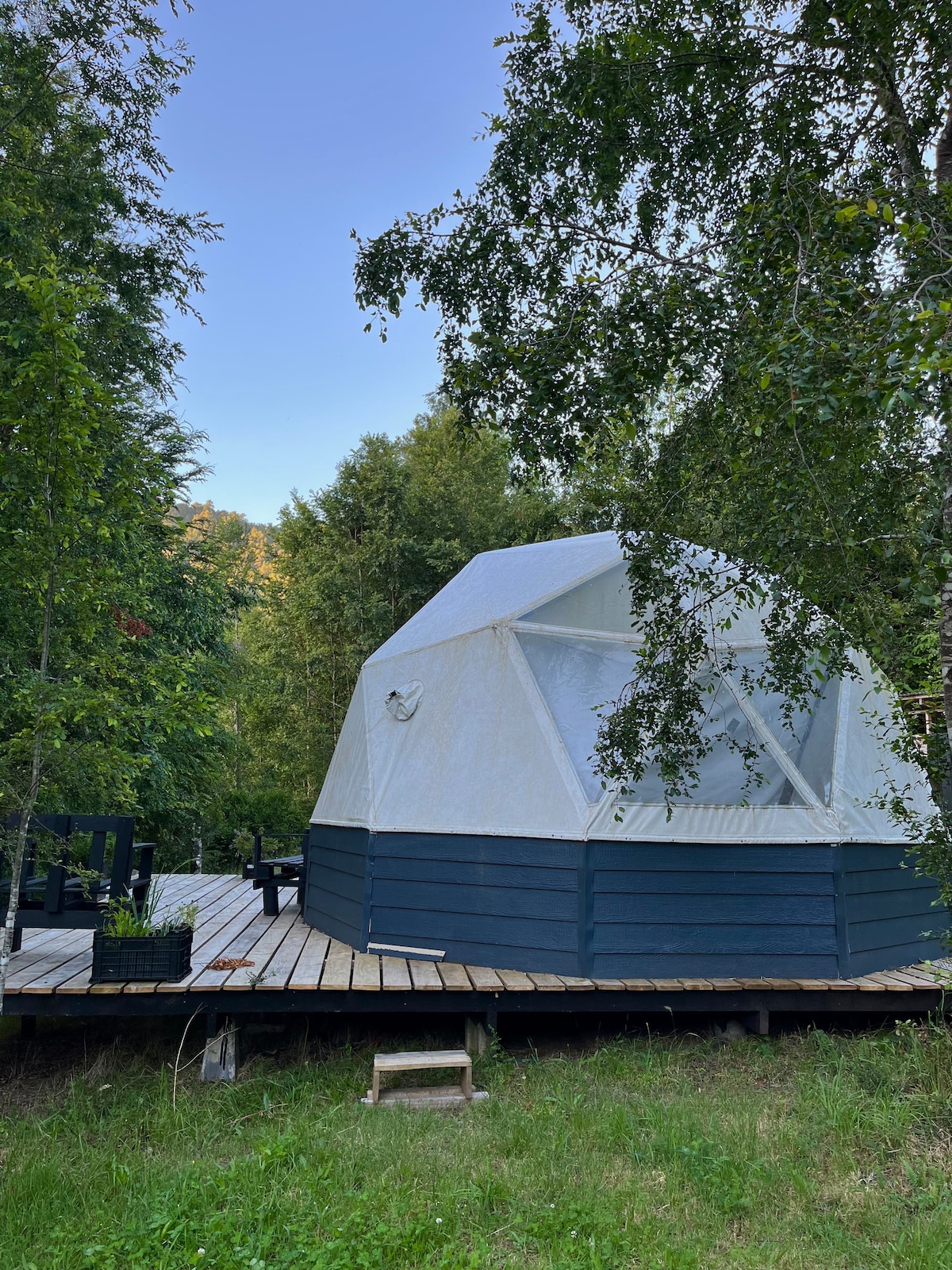 🌿 Domo glamping en bosque nativo cercano al río Nilahue. Cama queen, calefacción a pellets, baño privado, cocina equipada y tinaja a leña exterior bajo las estrellas. Wifi satelital. Ideal para reconectar con la naturaleza sin renunciar al confort. A 10 min del lago y a 30 min de Futrono y Lago Ranco. Anfitrionas instructora de yoga y Ayurveda y profesora de francés. Síguenos en @bosquealmadomo