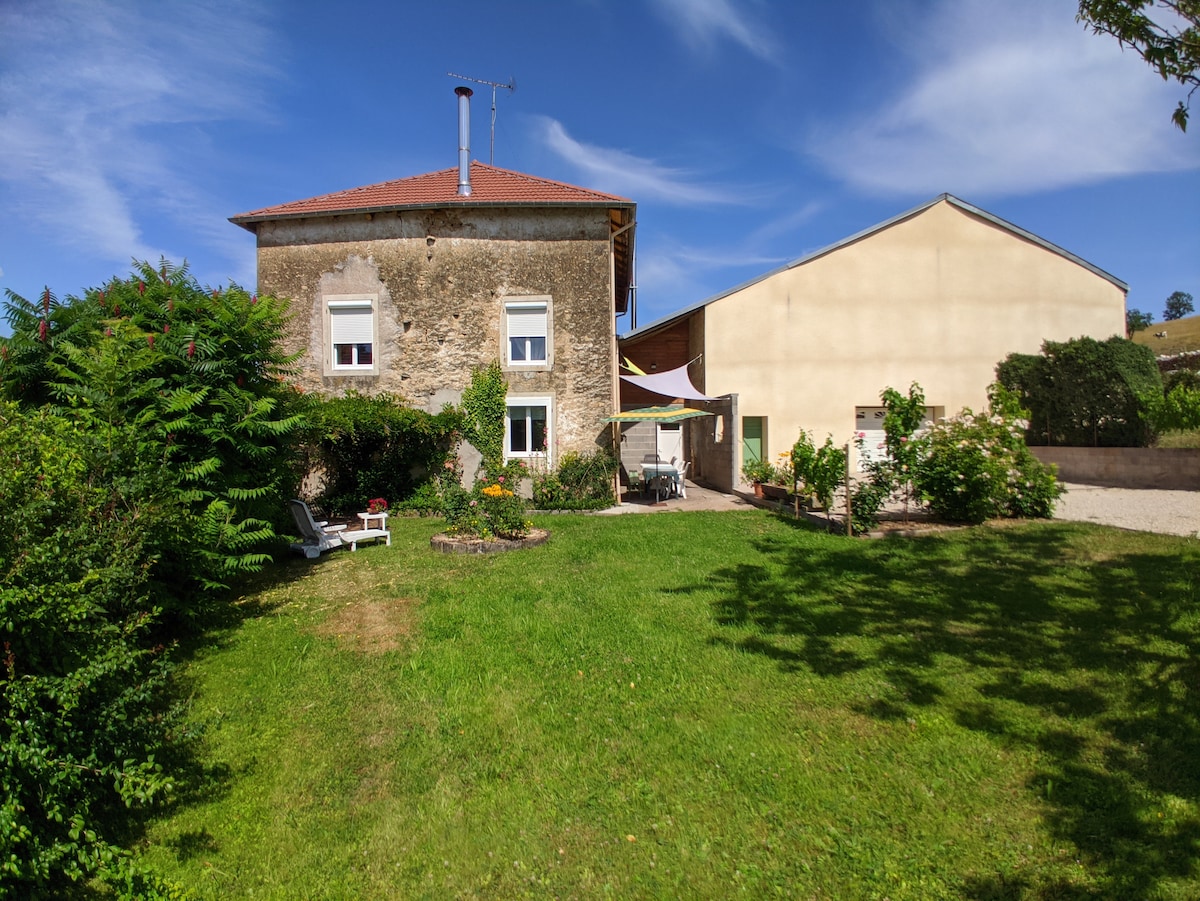 A 1,5 km del lago de Bouzey, los Vosgos le dan la bienvenida a una casa de campo totalmente renovada en un edificio de 200 años. Paseos en bicicleta, a pie o en coche, el ocio, el encanto de este lugar natural con vistas al estanque. Nuestros amigos los animales estarán a gusto. Disfrute de los desayunos al sol en la terraza y las tumbonas. Ropa de cama de hotel, cocina equipada con horno de vapor y todas las comodidades ideales para complacerle. 2 aseos, 2 duchas, etc. Un paréntesis garantizado...