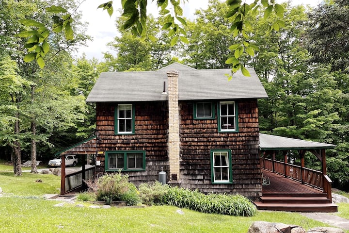 Ven a disfrutar de nuestro hermoso chalet de montaña en el corazón del parque estatal de Adirondack. Nuestra casa está situada fuera de la red en 80 acres de terreno privado y admite mascotas. El sueño de los amantes de la naturaleza, excursionistas y esquiadores. A solo 15 minutos de la montaña Gore y del lago George. Las bodas íntimas en el granero dan cabida a 75 personas o menos.