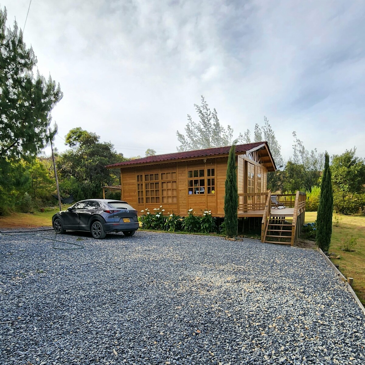 Bienvenidos a este mágico y acogedor refugio rodeado de hermosos árboles y cascadas, aquí te acompañarán el canto de los pájaros y la plenitud de la vida de montaña. Ideal para amantes de la naturaleza que buscan un contacto íntimo con ella y desconectarse de la agitada vida de la ciudad. Podrás emprender caminatas en el bosque o descansar en la terraza contemplando impresionantes paisajes boyacenses. Contarás con todos los servicios de un glamp de lujo a escasos minutos de la civilización.