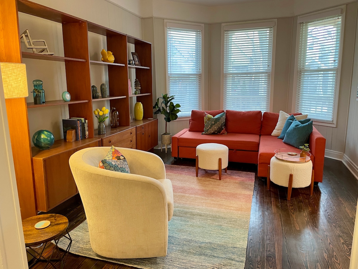 Piensa en este lugar como un pequeño y hermoso refugio extraño: un departamento vintage de Ravenswood con una banqueta de cocina iluminada por el sol, una mezcla curada de muebles daneses y lo suficientemente caprichoso como para mantener las cosas interesantes. Todo ello en el lado norte de Chicago, cerca de Wrigley Field, Andersonville y la línea marrón. Es un espacio con opiniones, pero nunca una actitud. Sábanas bonitas y pequeñas opciones de diseño que implican que la persona que se hospeda aquí tiene buen gusto. (Lector... ese eres tú).