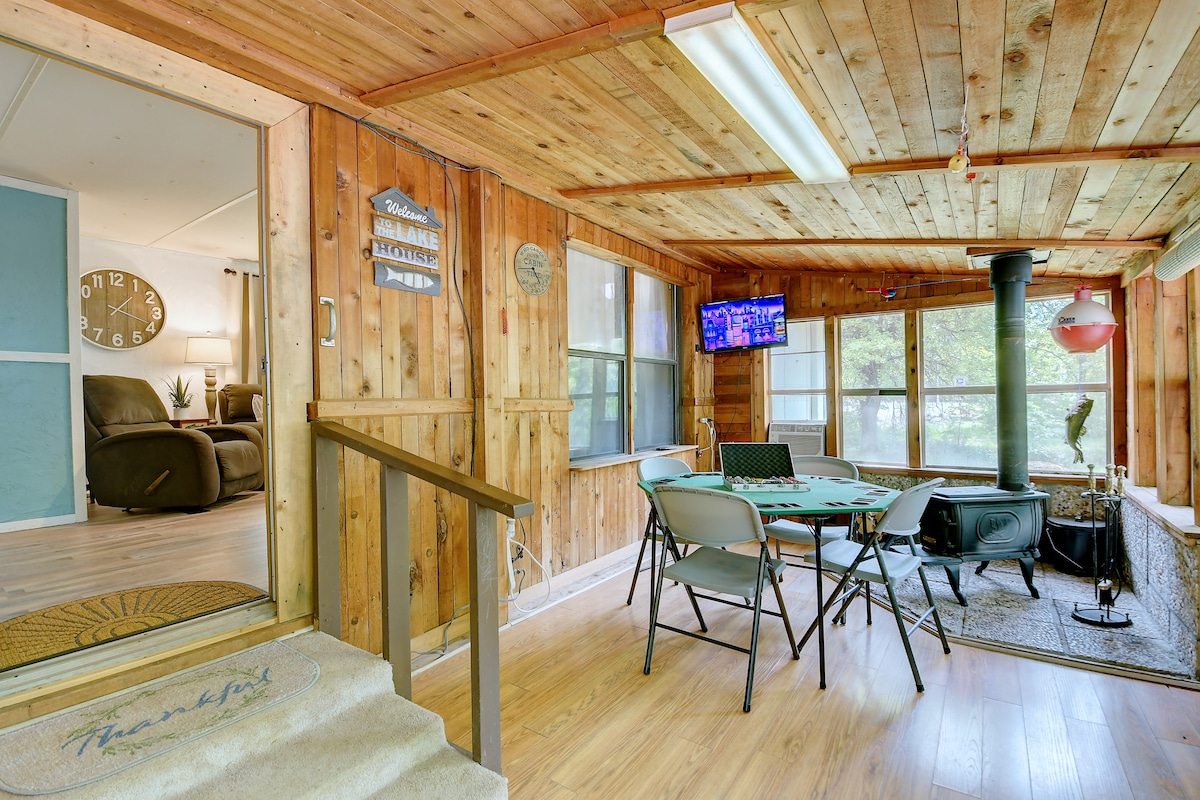 Looking to get away & do some fishing, our 2BR 2BA Mobile Home, Cardinal Cove @ Lake Texoma awaits. Complete with games, an outdoor fire pit and indoor wood-burning fire stove, covered parking for two boats and trucks, and a fish cleaning table and gutbucket, you're ready to entertain the family, hang with fishing buddies, or just kick back and relax after a day on the lake. Mobile home is fully furnished and equipped with comfy beds, cozy confines, and even an eagle's nest in the backyard.