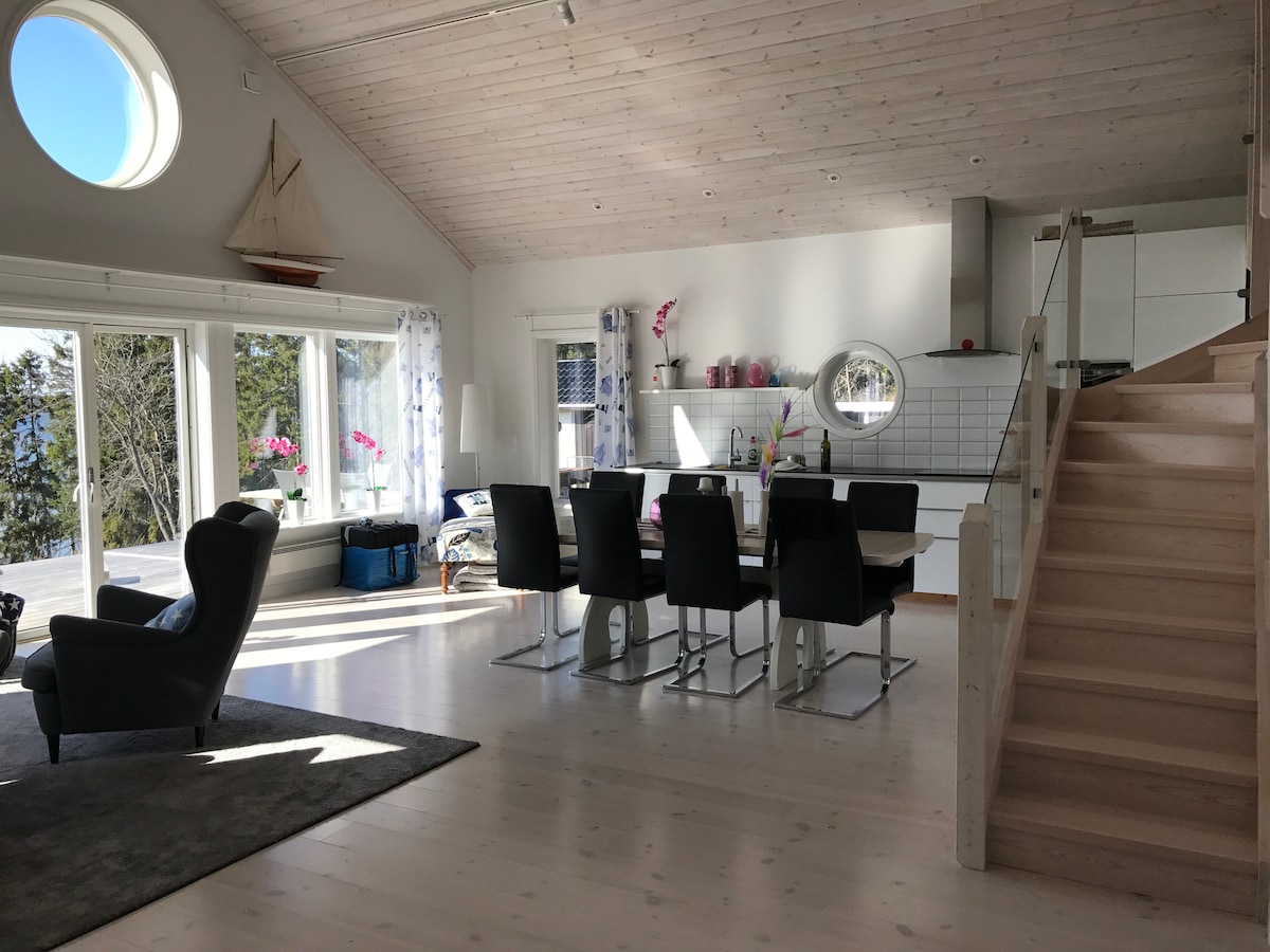 Bienvenido a nuestra hermosa casa en el campo, sin vecinos de al lado, excepto el bosque. Un corto paseo te lleva a un lago tranquilo y a una encantadora ensenada marina, para nadar o simplemente relajarte junto al agua. La casa tiene todas las comodidades modernas, un plano de piso abierto y grandes ventanales que traen el aire libre. También hay una sauna privada. Especialmente ideal para familias: hay juguetes, trampolín, columpios, una silla alta y una cama de bebé para que tu estancia sea fácil y divertida. ¡Disfruta de la paz y la tranquilidad!