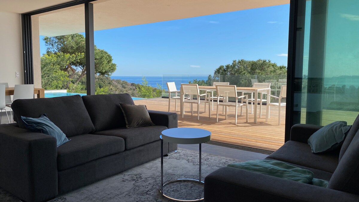 Bienvenido a nuestra moderna villa de ensueño con una impresionante vista al mar de 180 °, su propia piscina infinita e instalaciones de lujo. La villa tiene espacio para seis personas con tres dormitorios, cada uno con un baño privado, una cocina de alta calidad y totalmente equipada y una cómoda y espaciosa sala de estar. El mar con playas encantadoras y el centro de la ciudad de Rayol están a unos 15 minutos. Los aeropuertos más cercanos son Niza o Marsella.