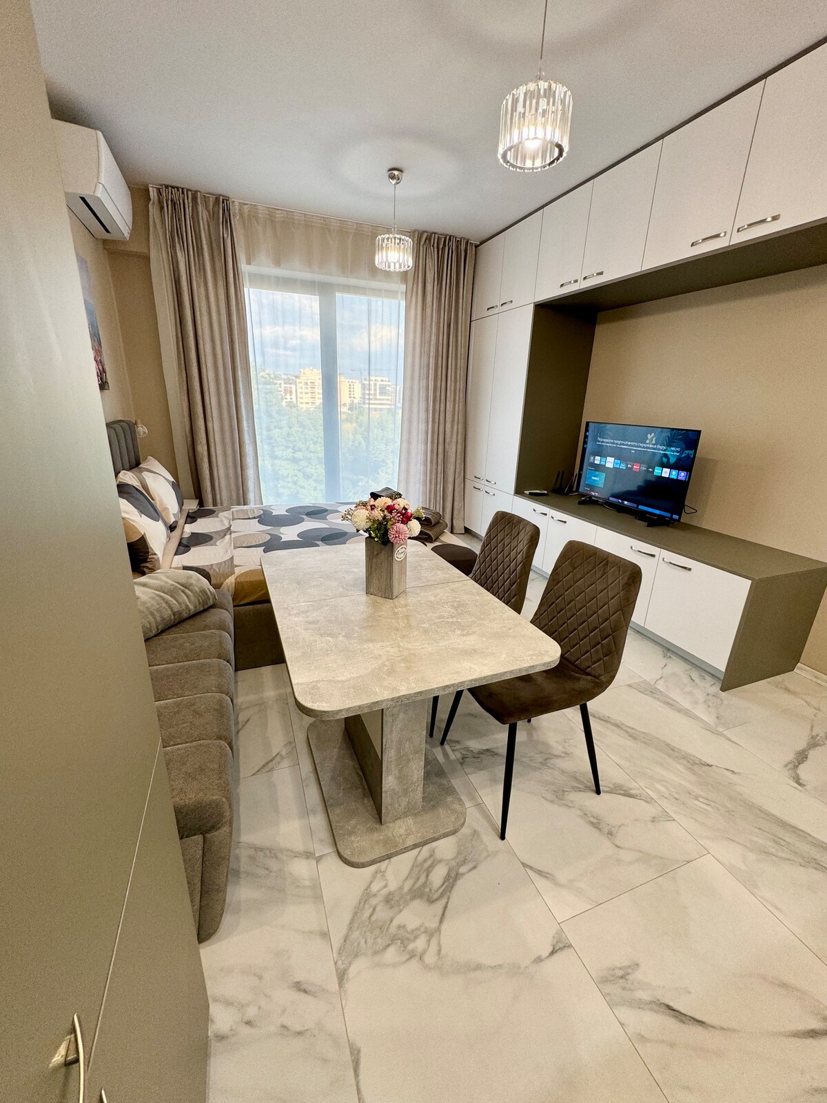 Te doy la bienvenida a mi estudio boutique en el ático al pie de Vitosha. Espacio luminoso, minimalista y tranquilo con hermosas vistas a la montaña y la ciudad. Ubicado en una zona tranquila y segura, perfecto para paseos nocturnos y relajarse lejos del centro. La cama cuenta con un colchón Magniflex y almohadas para un excelente descanso. El estudio tiene una cocina totalmente equipada, conexión Wi-Fi rápida y una acogedora zona de trabajo/comedor. Limpio, tranquilo y con fácil acceso tanto a la montaña como a la ciudad.