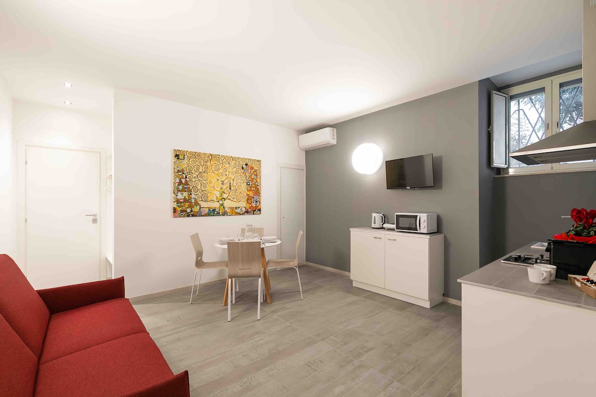 Questo appartamento offre tutto ciò di cui avete bisogno per un soggiorno indimenticabile. L'appartamento dispone di una cucina, un moderno bagno e un'accogliente camera da letto, il salotto è stato progettato per essere flessibile: con un letto a scomparsa trasformabile in un secondo letto matrimoniale Siamo situati nel quartiere Re di Roma, circondati da negozi, ristoranti e caffetterie. La stazione della metro A è a due passi, offrendovi un comodo accesso alle principali attrazioni di Roma.