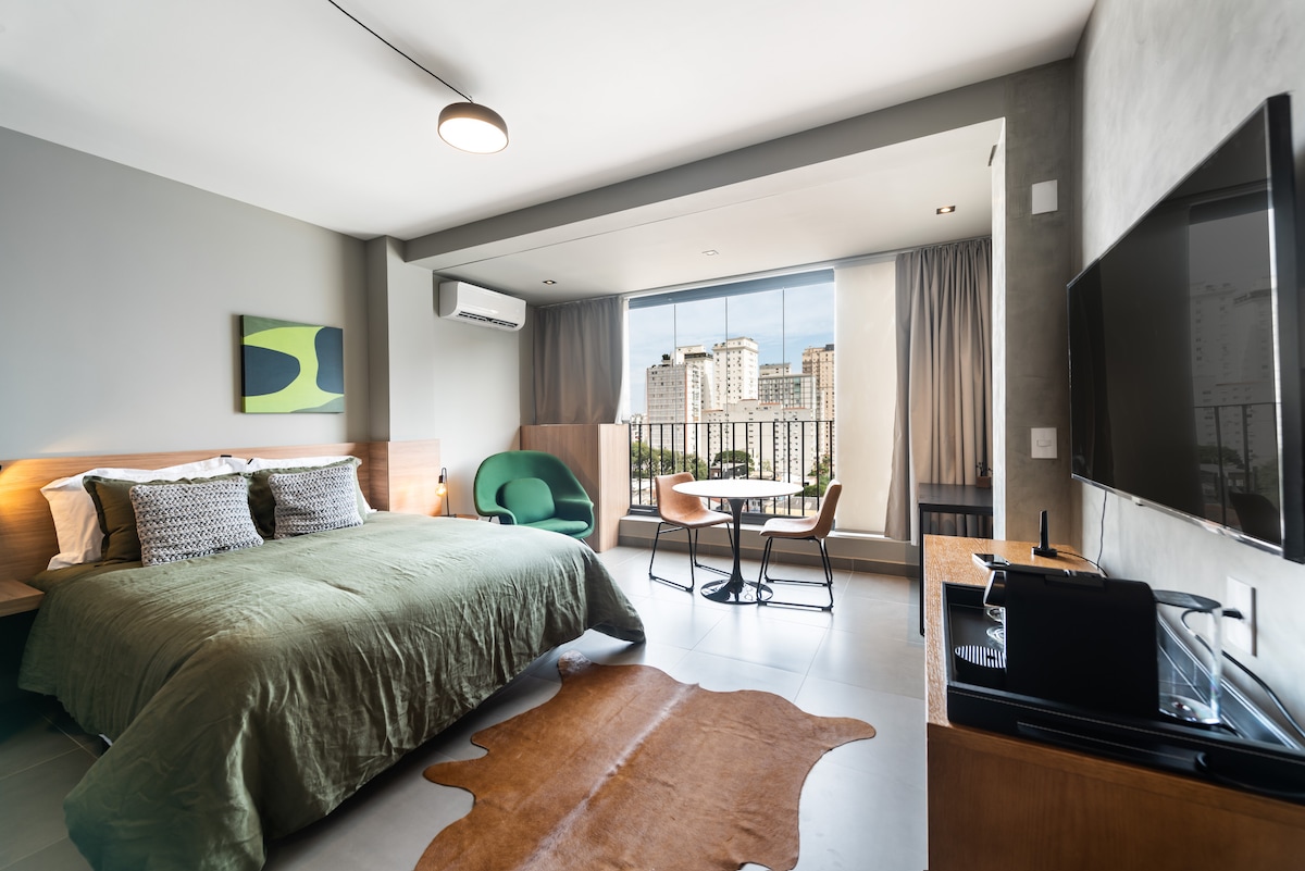¡Ven a alojarte en el corazón de Jardins, el mejor barrio de São Paulo! Estudio de 32 m², diseñado por arquitectos, con plaza de aparcamiento gratuita y todas las comodidades para su alojamiento. Junto a mercados, farmacias y gimnasio, además de los mejores restaurantes de São Paulo. A 5 minutos del metro. Cuenta con WiFi, SmartTv 55" con Globoplay y AppleTv+, minibar, cocina de inducción, microondas, Nespresso, videojuegos retro, baño espacioso y cama doble que se convierte en sofá para ampliar el espacio.