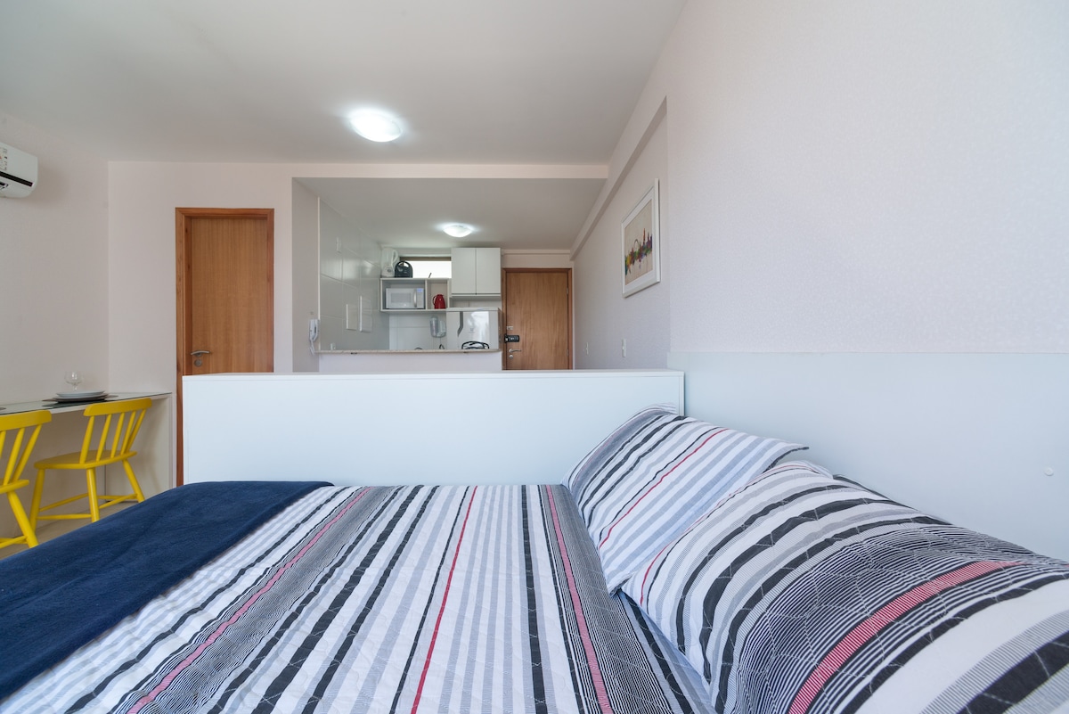 ¡A solo 1 cuadra de la playa de Boa Viagem! Apartamento completo de 1 dormitorio con cama premium, aire acondicionado en todas las habitaciones, wifi rápido y espacio de trabajo. Disfruta del edificio con piscina en la azotea, gimnasio y conserje las 24 horas. También tiene una plaza de estacionamiento y una cocina completa. Ubicación estratégica: a 2 cuadras de Shopping Recife, mercados, bancos y a solo 5 km del aeropuerto. ¡Comodidad y practicidad para una estadía perfecta! (Piscina cerrada por renovación.)