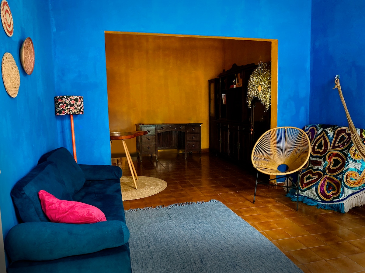 Casa de huéspedes con una ubicación increíble, en el corazón del centro histórico de Olinda, a 100 metros de la plaza principal (¡el lugar absoluto para estar durante el carnaval!) Ubicado en la parte trasera de nuestro exuberante jardín y rodeado de árboles frutales tropicales, cuenta con 2 dormitorios y 2 salas de estar, su propia entrada privada independiente, cocina, baño y terraza. ¡Un verdadero oasis de paz de tranquilidad en medio de la ciudad! ¡Vivimos y trabajamos en la casa principal y compartimos la piscina, la terraza y el jardín contigo!