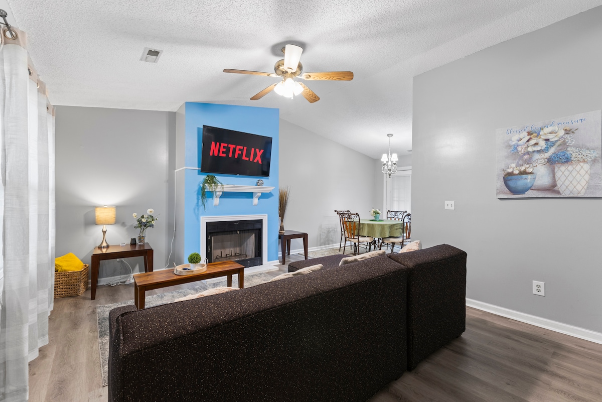 Esta casa de 3 dormitorios recién reformada está perfectamente ubicada en el centro de Fayetteville. Incluye colchones nuevos, muebles, electrodomésticos de acero inoxidable, armarios con encimeras de granito, cuatro televisores de pantalla plana 4k y una cocina totalmente equipada. El Centro Médico Cape Fear Valley está a solo 0,07 millas de distancia, a 9 minutos de Fort Bragg, a 0,02 millas de Starbucks y 3 tiendas de comestibles, muchos restaurantes dentro de un radio de 1 milla. El centro comercial Cross Creek está a 3,2 millas de distancia, junto con otros destinos de compras cercanos.