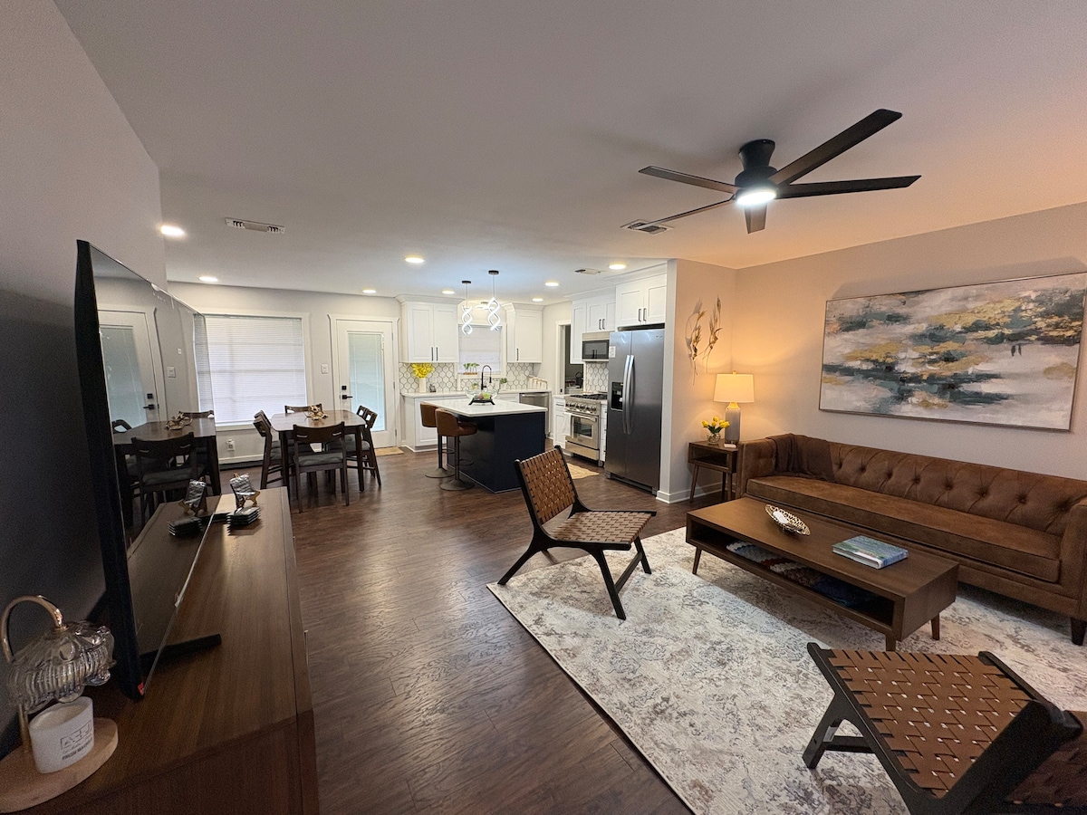 A serene haven where comfort meets style. Sink into plush beds with luxurious 700-thread ct European cotton sheets. TV in each room. A fully stocked kitchen awaits, & coffee to start your day. Within 10 minutes of hospitals, convention centers, eateries, and shopping. For those blending work & leisure, enjoy great internet, a dedicated desk, charging station, & a comfortable office chair. The garage provides shelter for a vehicle and doubles as a recreational space with a ping pong table.