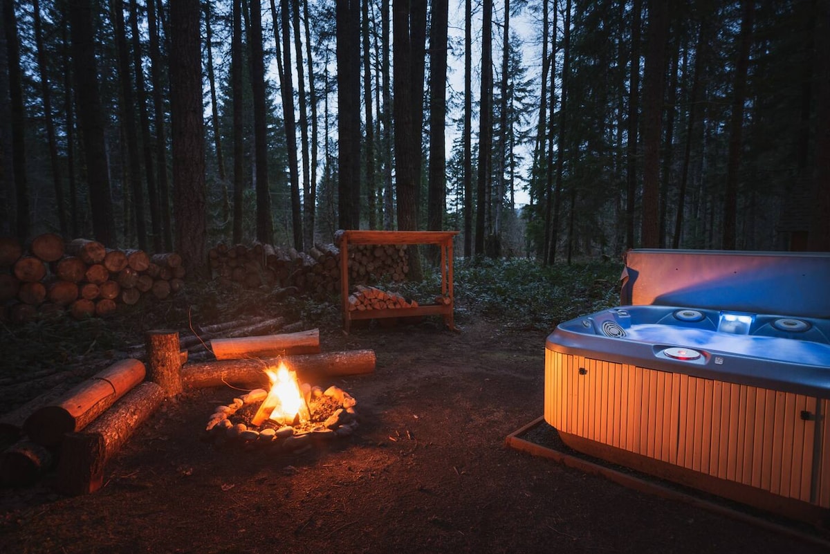 Privado. Tranquilo. Romántico. Diseñado para escapadas inolvidables. Escápate a tu propia cabaña de spa aislada a pocos minutos del Parque Nacional Mount Rainier. Después de un día de aventura, regresa a tu jacuzzi privado, sauna de cedro personalizada y fogón debajo del dosel del bosque. Los detalles cuidados, la iluminación acogedora, una cocina totalmente surtida, la barra de café, los juegos y la transmisión hacen que sea fácil instalarse y quedarse un rato. ¡Muchos huéspedes regresan año tras año para aniversarios, cumpleaños y reinicios tranquilos!