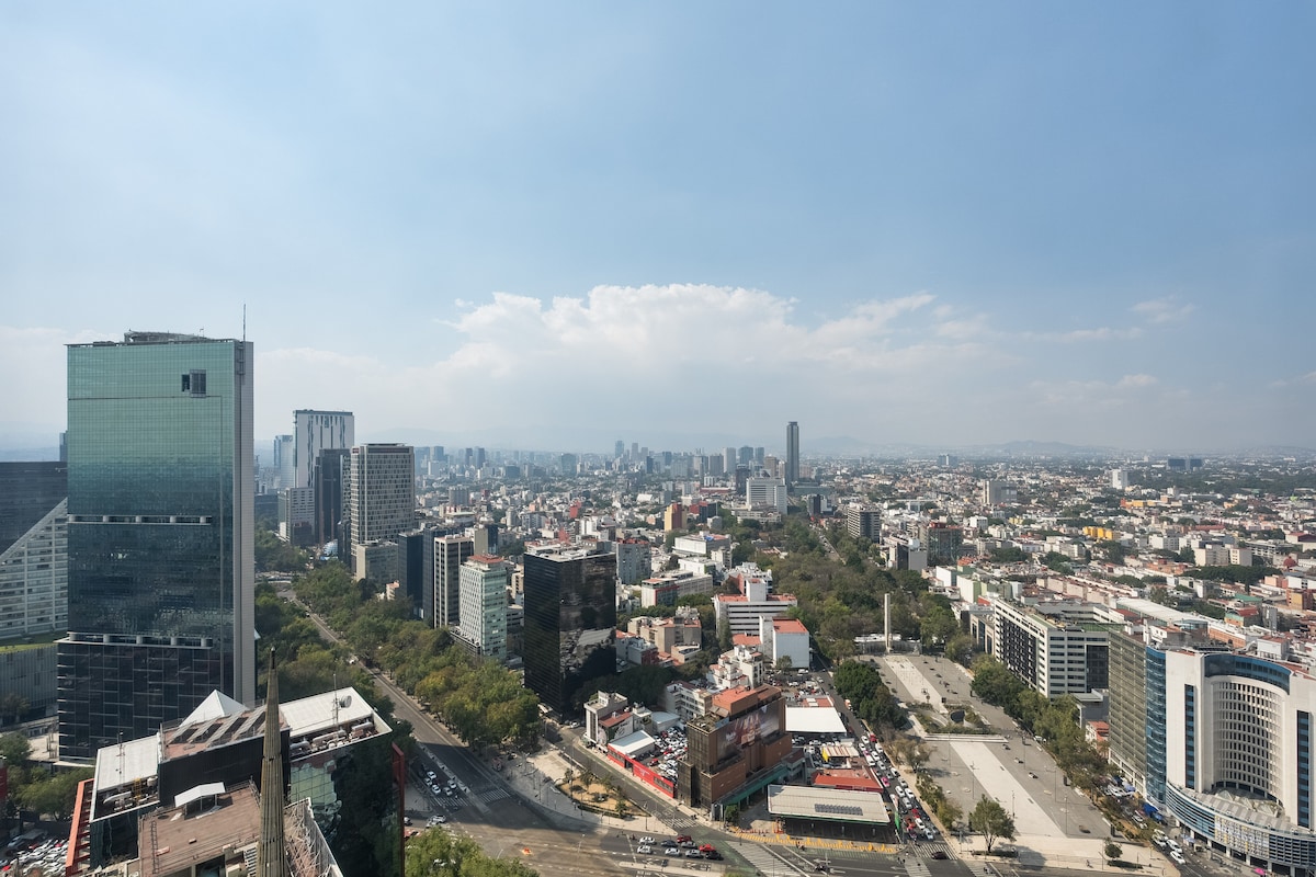 The condo is located in Reforma, one of the most beautiful places in Mexico City. **Air conditioning system only in the bedroom* Wifi with 50 mbps All facilities are open like Gym, pool, spa, jacuzzi and jogging areas. El departamento se encuentra ubicado muy cerca del Ángel de la Independencia y el complejo está ubicado sobre Reforma, una de las avenidas emblemáticas de Ciudad de México. Cuenta con diversas Amenidades como alberca, gimnasio, jacuzzi, pádel Mini split solo en la habitación