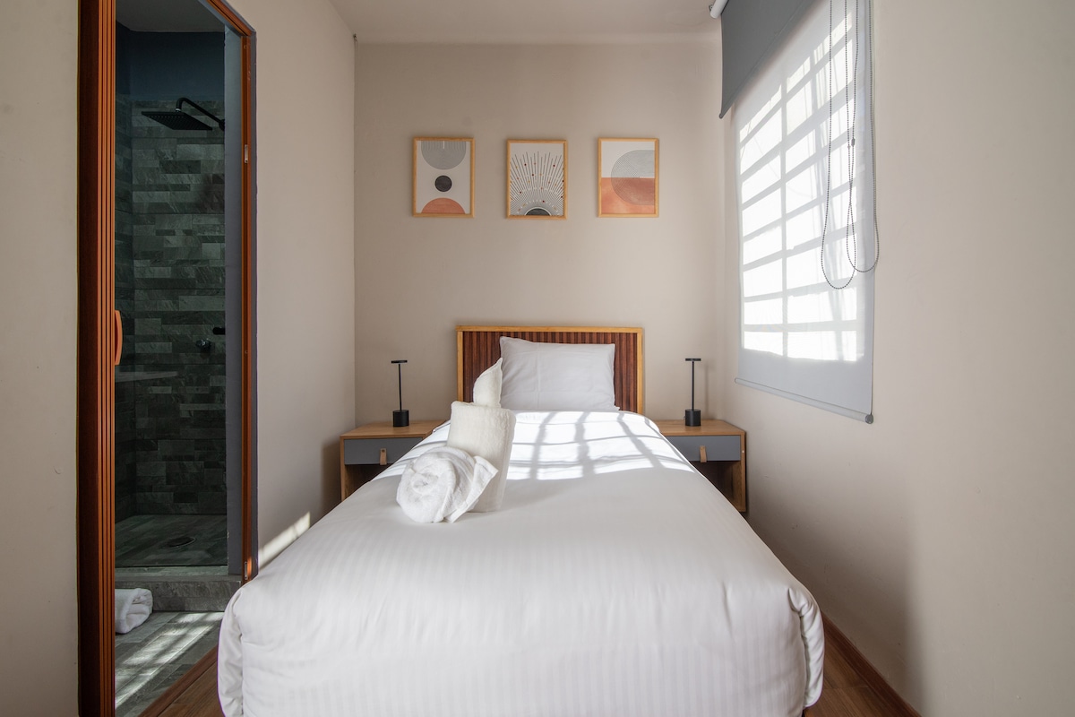Suite recientemente remodelada con entrada independiente, decoración moderna y totalmente equipada dentro de una casa tradicional, en la emblemática Colonia Roma, caracterizada por su cultura, gastronomía y vida nocturna. Excelente ubicación en uno de los lugares más céntricos y de moda de la Ciudad de México, cerca de estaciones de bicicletas y transporte público.