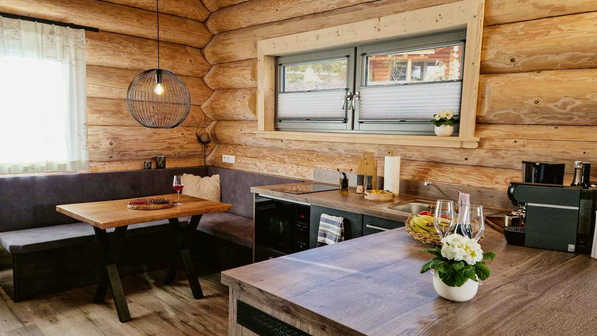 Más espacio para la libertad y la desaceleración El Chalet Leni está dirigido a parejas que aprecian la generosidad y el espacio además de la tranquilidad. También en un lugar absolutamente aislado, enclavado en la naturaleza a unos 700 metros sobre el nivel del mar, combina comodidad con moderación constante. La arquitectura de troncos redondos macizos, materiales naturales y una sensación de espacio abierto hacen de Chalet Leni un lugar donde el tiempo no importa.