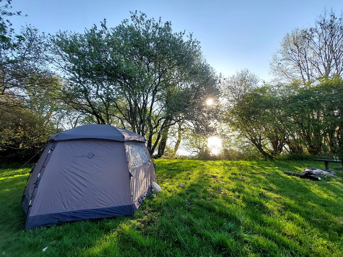 * *🏕️ Pernocta en el corazón de la naturaleza – Camp Light Pole en Stevns * * * *✨ ¿Qué ofrecemos? * * - * * 3 tiendas de campaña acogedoras * * (capacidad para 2, 2 o 6 personas). - * * Cocina compartida * * con microondas + nevera. - * * Fogata * * para cocinar y comodidad. - * * Inodoro/baño frío * * + energía en todas las tiendas de campaña. - * * Paraíso natural * * con manzanos, canto de pájaros y cielo estrellado. La granja del medio tiene 2 habitaciones individuales. 1 habitación con cama doble y 1 habitación con una cama individual con ascensor.