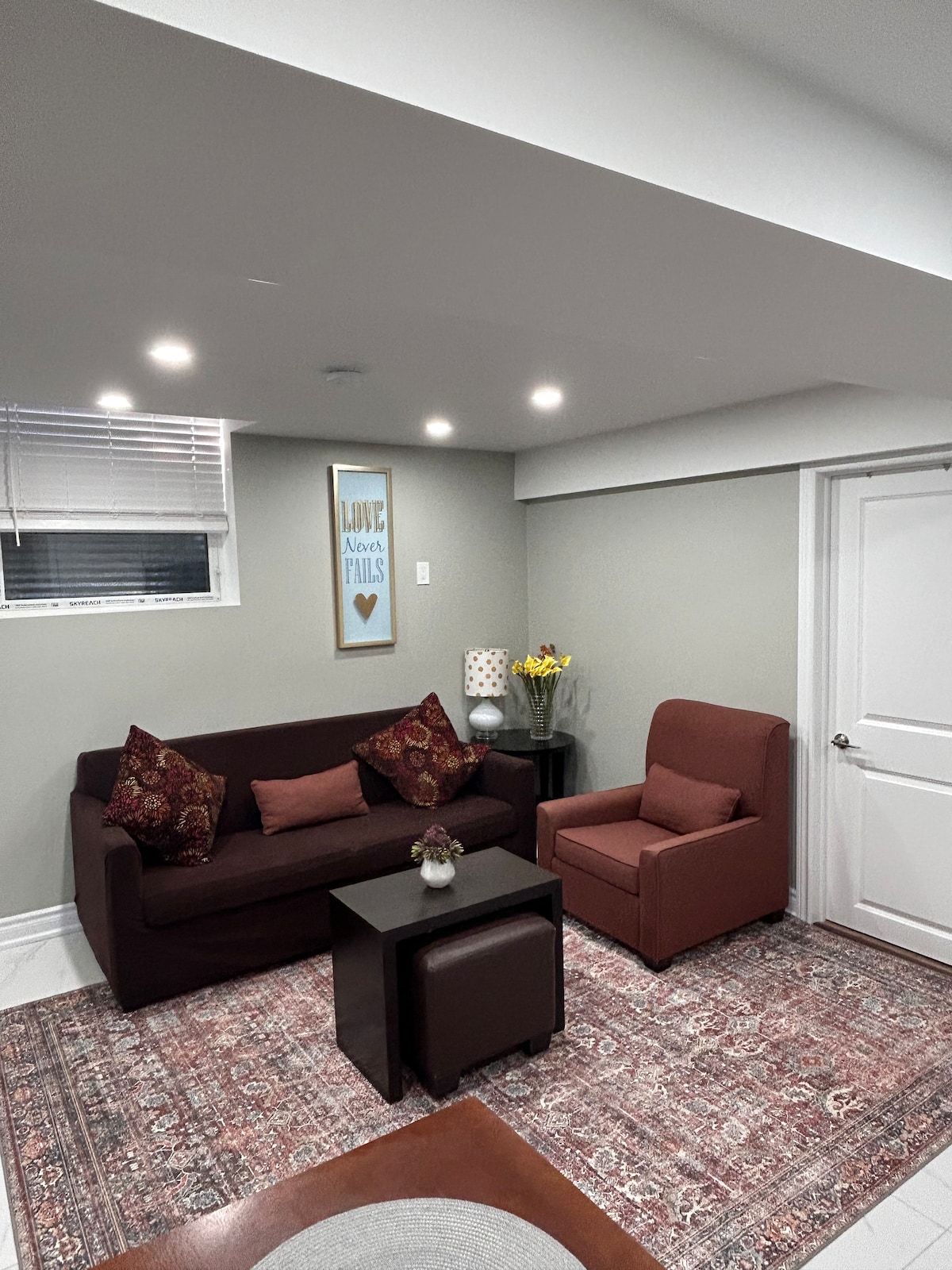 Bienvenido a nuestro espacioso y elegante dormitorio de 1 dormitorio en el sótano, perfectamente adecuado para parejas o personas que buscan una estancia inolvidable. Ubicada en una ubicación céntrica, esta joya oculta ofrece un acceso rápido y fácil a todos los servicios que podrías desear. Con una ubicación céntrica, a solo 2 minutos de la 401, gasolineras y McDonald 's, y a 5 minutos de Costco. Durham College se encuentra a 15 minutos en coche. Número de permiso RHSTR2025001
