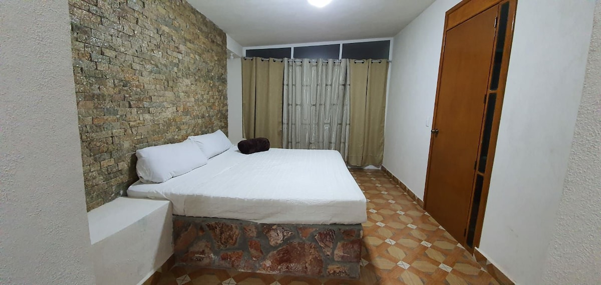 Es una estancia en planta alta con balcones en las habitaciones tiene buena vista hacia las montanas y muy buena iluminacion, las habitaciones tienen una cama king size, en total son 3 camas king size. su television, su ventilador. el departamento cuenta con su cocina integral,frigobar,parilla,cafetera,licuadora trastes para cocinar.Estamos por la carretera nacional y a 5 minutos en automóvil del jardin surrealista. **** no aceptamos mascotas.