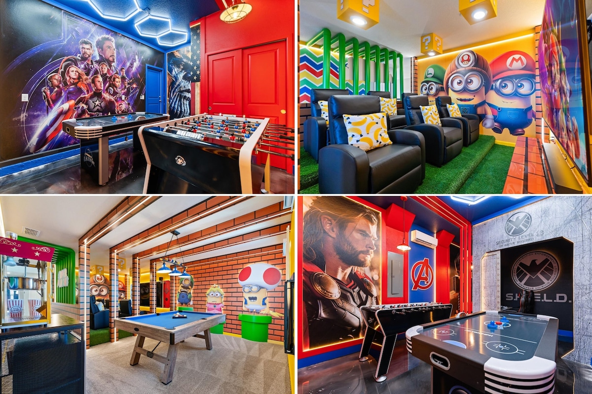 El equilibrio perfecto entre DISEÑO CON ESTILO, CONFORT DE LUJO y ENTRETENIMIENTO SIN FIN en el impresionante Reunion Resort de 3,5 millas cuadradas. Tendrás tu propia piscina privada, spa, sala de cine y juegos, 3 suites principales, 3 increíbles dormitorios temáticos (MARVEL, FROZEN II, NASA) para niños o adultos, la última estación de juegos Xbox Series X, una terraza de piscina de 2500 pies cuadrados con vistas a un hermoso bosque y estanque, chimenea y mesa de billar, a pocos minutos de Disney.