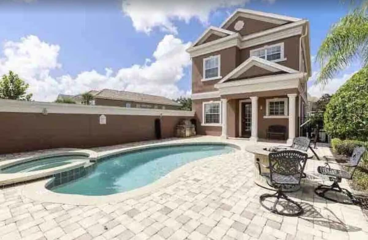 Increíble casa de lujo moderna a estrenar en Encore Resort Reunion. SE ADMITEN MASCOTAS y minutos de todos los parques temáticos. NUEVO HOGAR. Piscina privada y spa / sala de juegos / cine / gimnasio / sillón de masaje / chimenea / PS5 / juegos de mesa y mucho más. Abraza lo extraordinario y reserva tu estadía en nuestro alojamiento, donde el lujo y el entretenimiento se unen para una experiencia de vacaciones inolvidable. ** Consulta las reglas antes de reservar. El acceso al parque acuático no está incluido. **