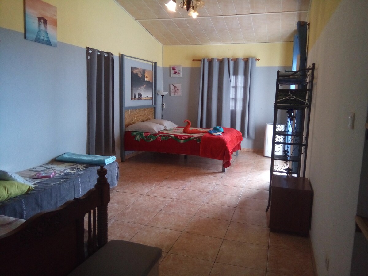 Estudio contiguo a la casa de Klébert y Laurence con terraza privada. Situado en Ste Suzanne ( a 20 minutos del aeropuerto) en una zona tranquila. Piscina común pero no climatizada. de junio a septiembre durante el invierno austral el agua está a 22°. Accesible de 8:00 a 21:00 Le daremos la bienvenida para que disfrute de una estancia de lo más agradable. Apasionados del senderismo, podemos hacerle recomendaciones si lo desea.