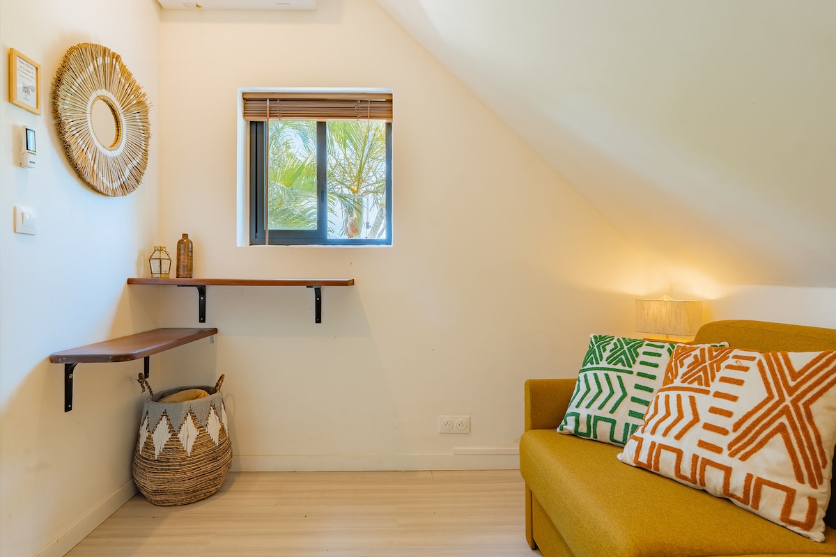 L’Oasis des Colibris – Un bungalow 4* de 26m2, alliant confort, nature et bien-être à L’Étang-Salé. Idéal pour 2 à 4 personnes, il offre un espace cosy, une cuisine équipée, une varangue végétalisée et un spa partagé (sur réservation). À 10 min de la plage et proche des sentiers de forêt de l'Étang-Salé, c'est un havre de paix conçu avec des matériaux naturels et des créations locales. Un séjour ressourçant vous attend !