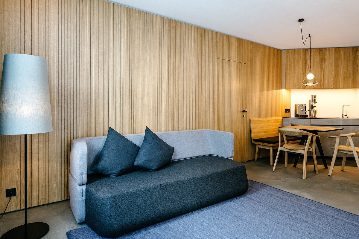 Puitalm – en lo alto. Y bastante lejos de lo común. Apartamentos con estilo, vistas para enmarcar y esta sensación tranquila de: "Me quedo aquí". Mucha luz, buen diseño, pensado hasta el último detalle, y sí, cada unidad tiene su propio balcón o terraza con un panorama real. Sin zoom, sin filtro. Además: nuestro spa. Piscina infinita con vista al valle, sauna panorámica, baño de vapor, áreas de relajación con vista. Para aquellos que quieren sentirse como si hubieran vuelto a la normalidad después de estar afuera. Ya sea que estés caminando, leyendo, trabajando o no haciendo nada en absoluto, todo se siente mejor aquí. Tu mejor opción: 76–93 m² de espacio habitable | 2 dormitorios | Balcón con vista panorámica Ocupación: 4-6 personas Servicios: dos dormitorios con cama doble y cada uno con su propio baño, cocina amplia con sala de estar (ampliable), comedor con espacio para todos, balcón con vistas, 2 plazas de aparcamiento incluidas