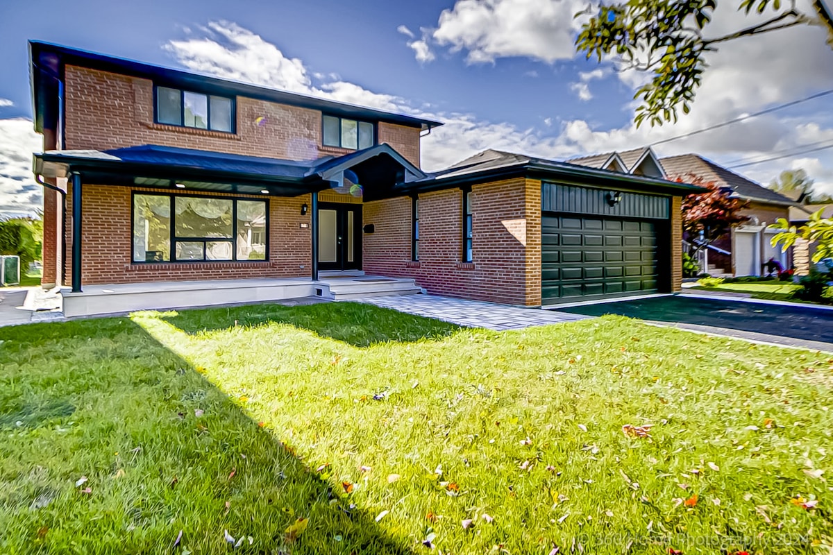 ¡Apartamento totalmente renovado, moderno, luminoso, lujoso y espacioso (más de 1800 pies cuadrados) de 2 dormitorios, 2 baños, techo alto, entrada independiente y patio para tu próximo hogar acogedor lejos de casa! ¡Con valoración de 5 estrellas y entre el 5 % de los mejores alojamientos en AirBnB! Lo más céntrico de la zona metropolitana de Toronto. Estarás cerca del aeropuerto de Pearson, la autopista 401/404/407, centros comerciales, tiendas de comestibles y una gran variedad de restaurantes de moda, cines, parques y rutas de senderismo/bicicleta por todas partes. ¡Reserva con confianza!