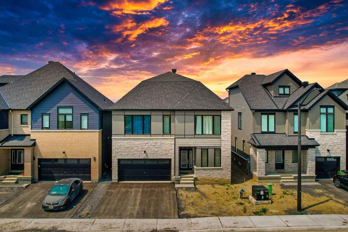 WELCOME To this stylish large new house in the upscale safe neighborhood of Riverside South, Ottawa. Perfect for families, co-workers & friends GREAT LOCATION 2 min to shopping, Park & Ride, Rideau River, parks & trails. 10 min to Barrhaven Town Center with all major stores & restaurants. 11 Min to Via Rail – Fallowfield Station. 14 min to airport, E&Y Centre Amazon, 416, and 417 hwy 21 min to TD Place stadium 24 min to downtown. 26 min to Canadian Tire Center. We can't wait to host you!