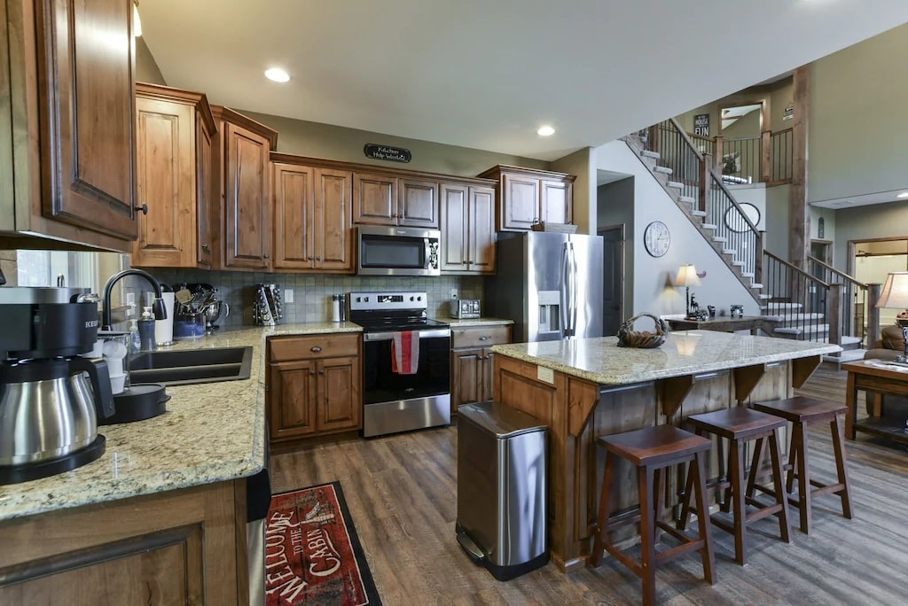 ¡Bienvenido a casa! Cabin Como ofrece 3 dormitorios (2 camas tamaño king, 1 litera con 4 camas individuales), 2 baños y capacidad para 10 huéspedes. A pocos metros del lago Taneycomo, experimenta las mejores vacaciones en Cabin Como by Camp Galler, donde la relajación se combina con la aventura en el corazón de los destinos más buscados de Branson. Disfruta del hermoso diseño interior que combina las comodidades del hogar con una sensación rústica de cabaña, lo que lo convierte en el hogar perfecto lejos de casa. ¡Sigue leyendo para ver todas las increíbles características!